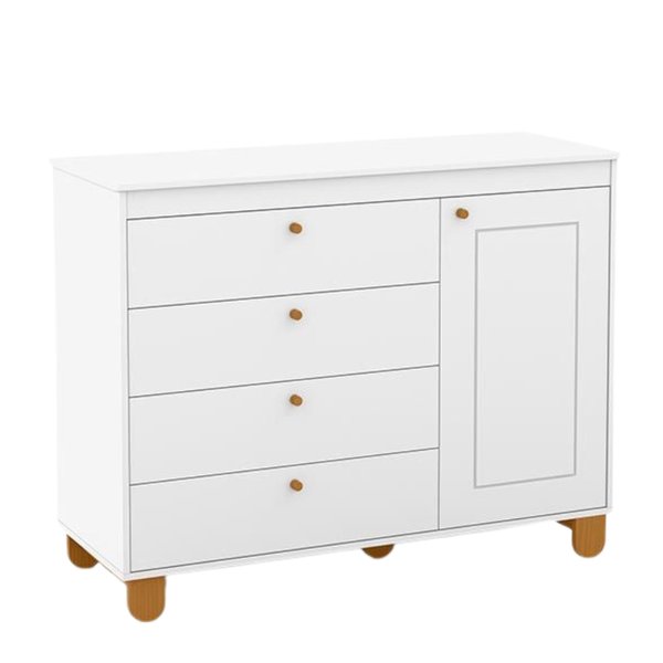 Esta cômoda da linha Zupy é um móvel infantil com 1,20 m de largura, projetado em estrutura 100% MDF, o que garante resistência e durabilidade. Suas dimensões (aproximadamente 1200 mm de largura, 930 mm de altura e 460 mm de profundidade) oferecem um bom espaço para armazenar roupas, itens de enxoval, brinquedos ou acessórios do bebê. O acabamento em “Branco Soft / Eco Wood” confere um visual suave e elegante, combinando o branco delicado com detalhes em tom de madeira — ideal para quartos de bebê ou infantil com decoração neutra, clara e aconchegante.