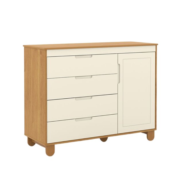 Pensada nos mínimos detalhes, a Cômoda Zupy conta com corrediças telescópicas que permitem a abertura suave e completa das gavetas, puxadores usinados diretamente na estrutura para mais segurança, pés de madeira que adicionam charme ao visual e tubo de alumínio para cabides. Seu diferencial está na porta com detalhe em baixo-relevo, no sistema de dobradiças slow motion (movimento lento) e no sistema antivolteio, que garante ainda mais estabilidade e segurança para o ambiente infantil.
