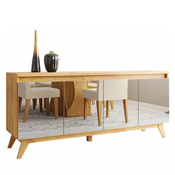 Composto por 4 portas, o buffet oferece amplo espaço interno para organizar louças, taças, utensílios ou objetos pessoais com total praticidade. Seu design funcional permite manter tudo sempre em ordem, ao mesmo tempo em que valoriza o visual do ambiente. É uma excelente opção para quem busca um móvel que una organização e sofisticação em um só produto.