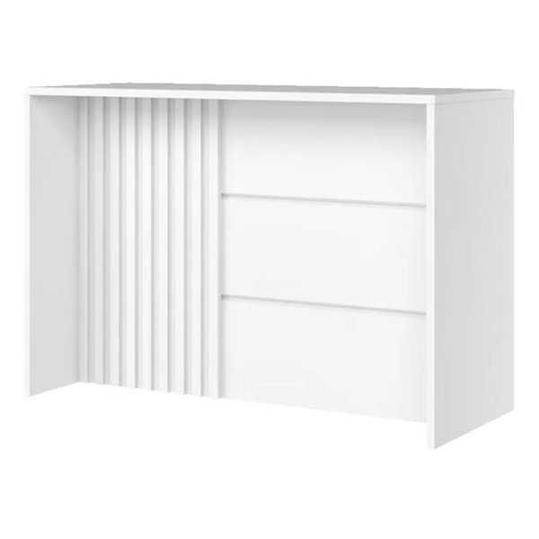 O(a) Bancada de Cozinha Ilha Gourmet com Ripado Branca Hp - Henn é produzido em MDF na escala de brilho Fosco e Semi-Brilho, e possui um grau de dificuldade de montagem: Médio.Seu revestimento/acabamento é: Pintura UV.