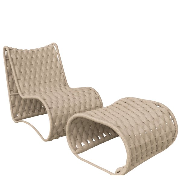 O descanso de pé que acompanha a poltrona complementa o conforto do conjunto, criando um espaço ideal para leitura, contemplação ou descanso prolongado. O tricô náutico em tom bege claro valoriza o estilo clean e elegante, combinando com diferentes estilos de decoração externa. Além disso, sua estrutura leve facilita o deslocamento e a organização dos ambientes, unindo praticidade, beleza e durabilidade em um único conjunto.