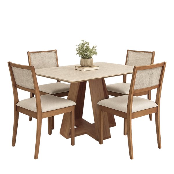 Ideal para composições com até 4 cadeiras, essa mesa é perfeita para salas de jantar compactas, varandas gourmet ou cozinhas planejadas. Versátil, ela combina facilmente com diversos estilos de cadeiras e decorações, tornando suas refeições ainda mais especiais em um ambiente cheio de personalidade.