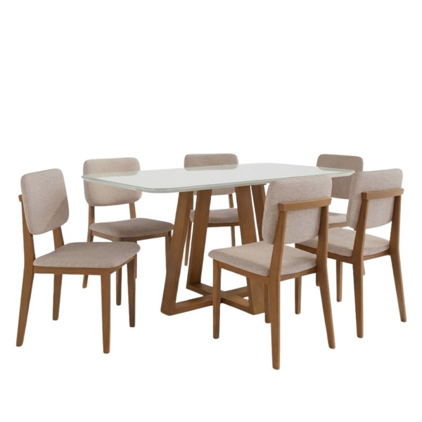 Acompanha o conjunto 6 Cadeiras 130 da Delazari, produzidas em madeira de eucalipto e estofadas em tecido de alta qualidade, garantindo conforto e durabilidade. As cadeiras apresentam um design harmonioso, que une linhas contemporâneas ao charme natural da madeira, criando um ambiente aconchegante e elegante. Ideal para quem busca um conjunto resistente, bonito e capaz de transformar a sala de jantar em um espaço ainda mais convidativo.