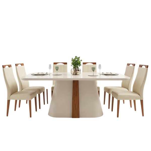 O Conjunto de Jantar Mesa Ryze com 6 Cadeiras Grécia da Madetal é a escolha perfeita para quem busca unir elegância, resistência e conforto em um único ambiente. A mesa, com 1,80m x 1,00m, traz um tampo amplo que acomoda até seis pessoas com conforto, sendo ideal para refeições em família ou momentos especiais com amigos. Sua estrutura é toda em madeira de alta qualidade, com acabamento refinado e design moderno que valoriza os veios naturais da madeira, proporcionando um toque sofisticado e acolhedor ao espaço.