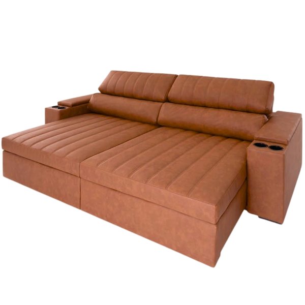 Apresentamos o Sofá 9060 Gênova/Lisboa de 2,70 metros em Corino Caramelo, uma peça imponente que une elegância, funcionalidade e extremo conforto. Seu design retrátil e reclinável proporciona a experiência ideal para momentos de descanso e lazer, com acabamento sofisticado em corino caramelo que se adapta com facilidade a diferentes estilos de decoração. O assento conta com espuma D25 Soft certificada pelo Inmetro, pillow top de 14 cm, molas bonnel, percintas elásticas e corrediças metálicas que garantem conforto e durabilidade. Além disso, seus rodízios incolores de 3,8 cm permitem movimentação prática e discreta.