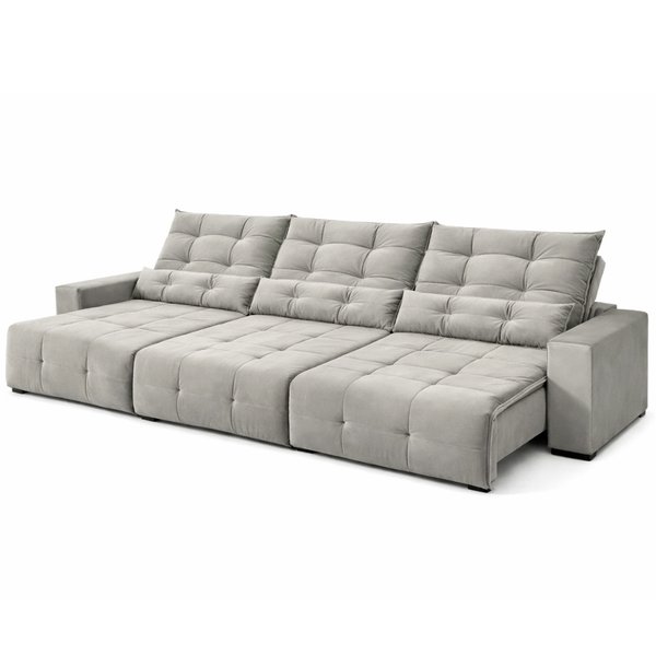 O Sofá Estofado Porto, com 2,70m, é a escolha perfeita para quem busca elegância e funcionalidade. Seus assentos retráteis, com sistema de corrediças metálicas e avanço de 50 cm, garantem praticidade e conforto. O encosto articulado, removível e com catraca de 6 estágios, proporciona uma experiência personalizável de relaxamento. Produzido com tecidos importados de poliéster, viscose e algodão, o Sofá Porto combina maciez e durabilidade, agregando sofisticação ao ambiente.